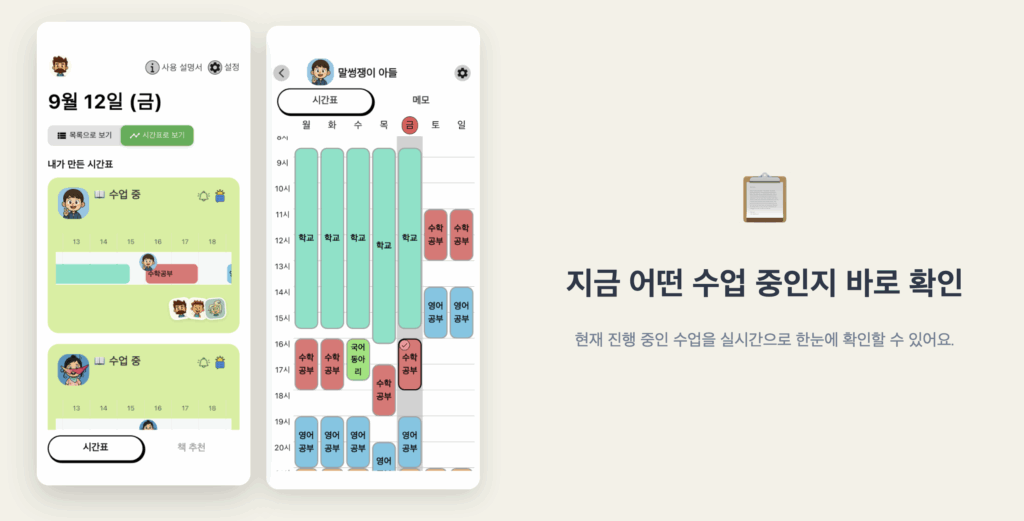 - ✅ 아이들의 복잡한 학원 스케줄을 한눈에 관리하고 싶은 학부모님